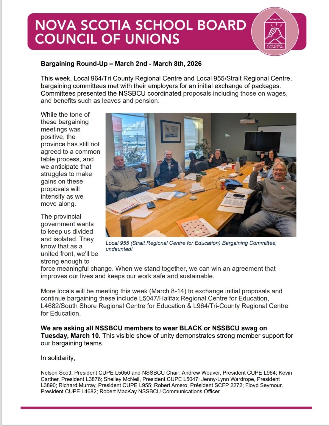 Please check your email today for an NSSBCU Update.